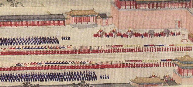 後者は康煕帝の南巡を題材とする大型の図巻で、隊列を組んだ文官、騎士、武士、大規模な船群など壮大な規模で描かれている。これはお抱えの画家に書かせたものである。満族は漢族に比べて人数も文化も少ないが、清王朝の統治が行き届き、この時期に全盛期を迎えていたことが分かる。